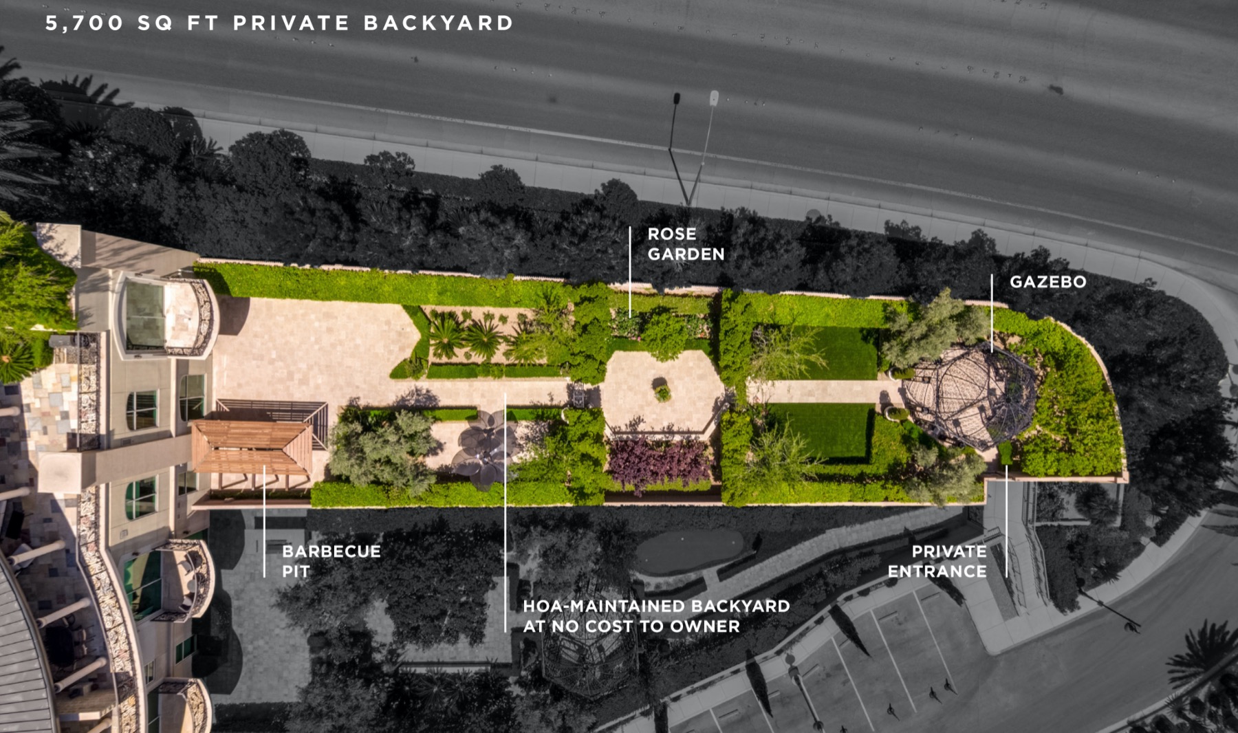 Including a large built-in Viking BBQ, rose gardens, and a stunning iron gazebo, the backyard is maintained by the HOA, but for the exclusive use of the tenant. It is also has a secured private entrance that can be accessed without going through the main gate and provides easy access to the nearby Suncoast Casino, Tivoli Village, and Boca Park.